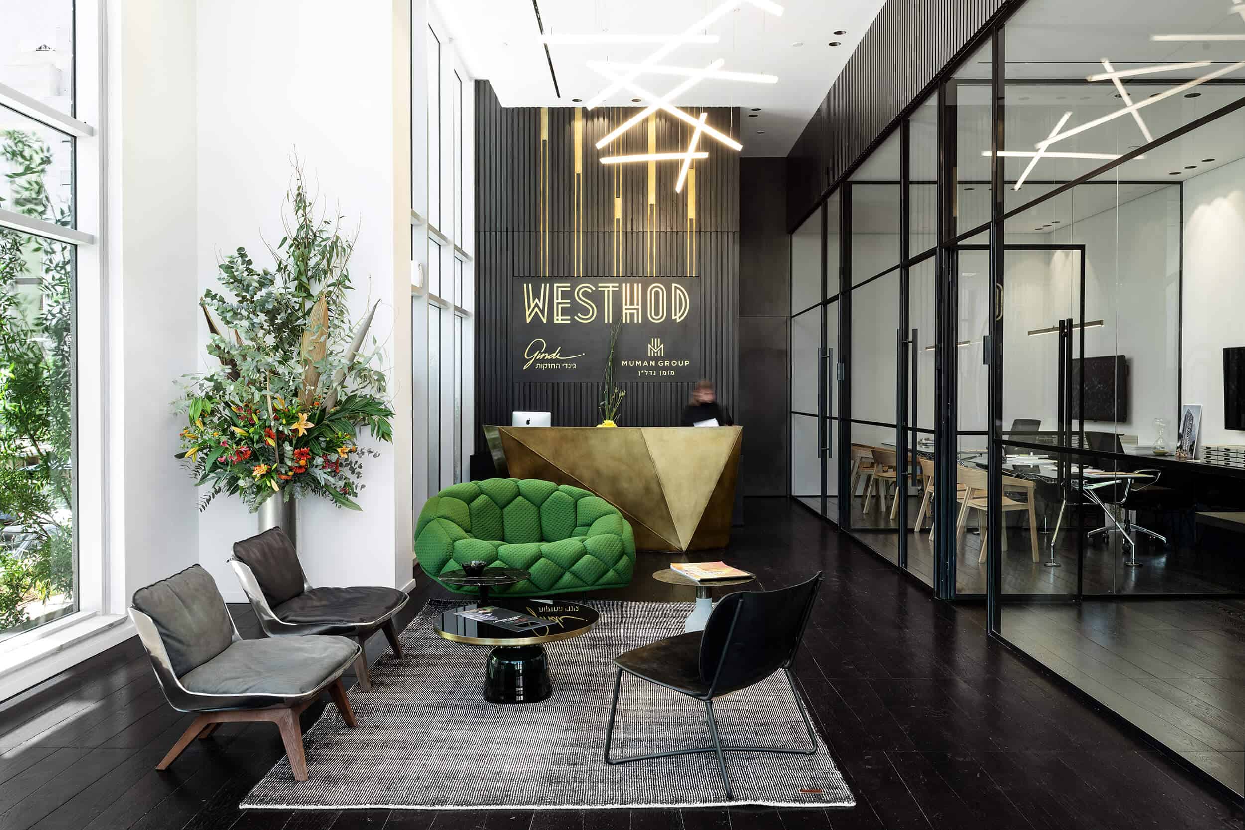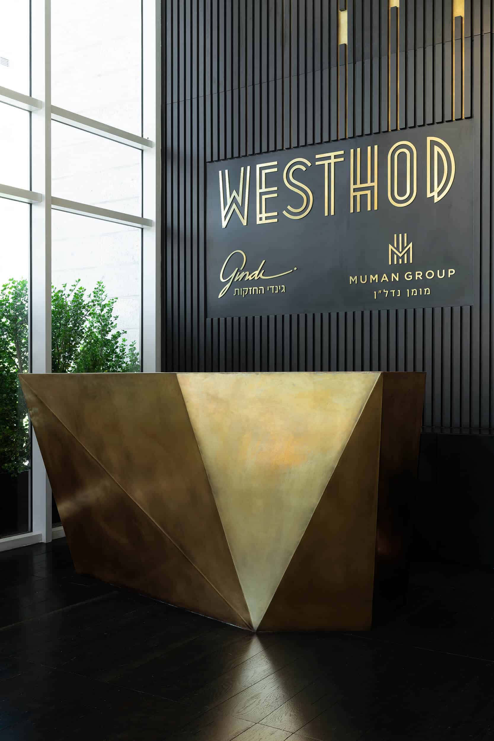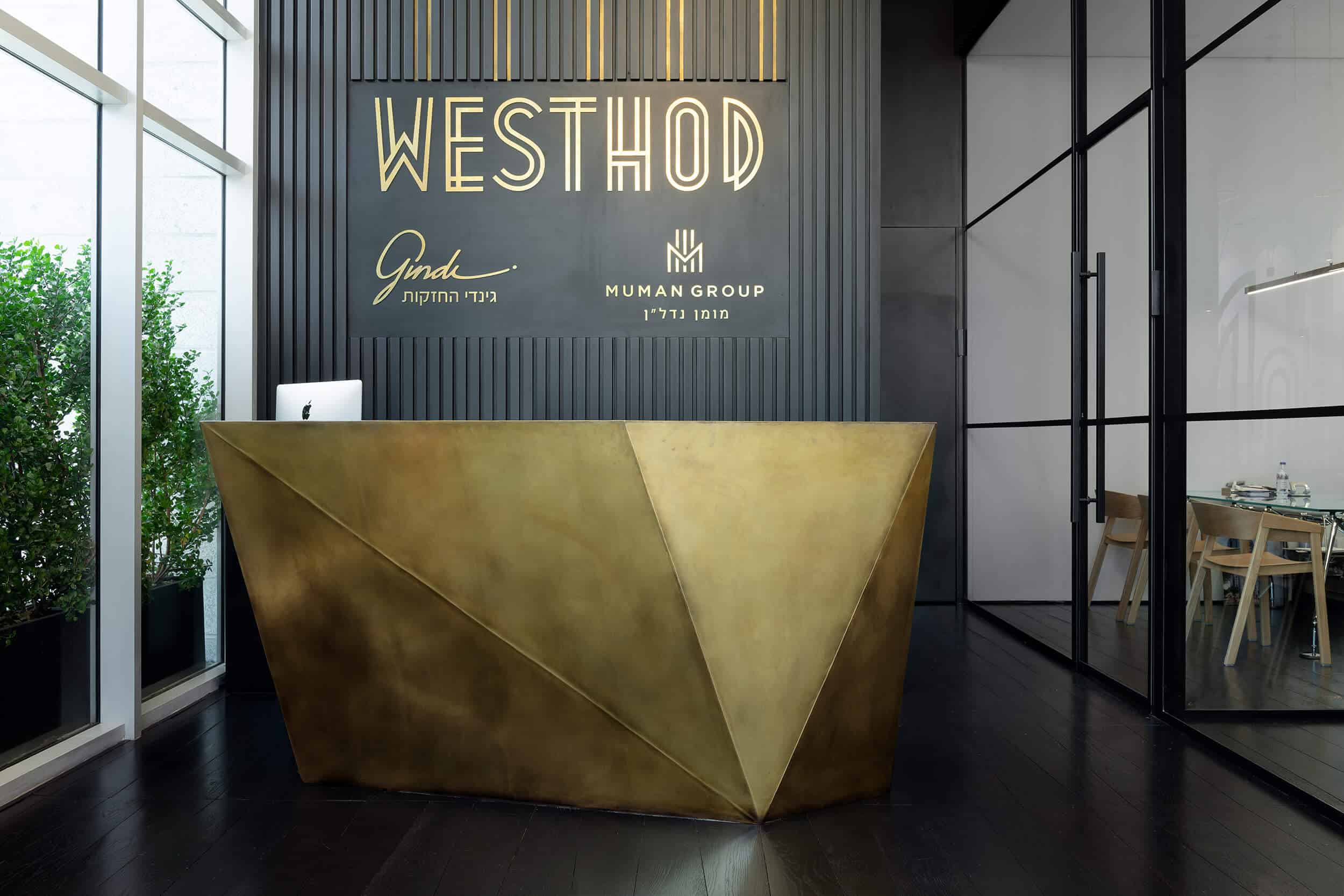 דלפק קבלה מברונזה במשרד מכירות גינדי