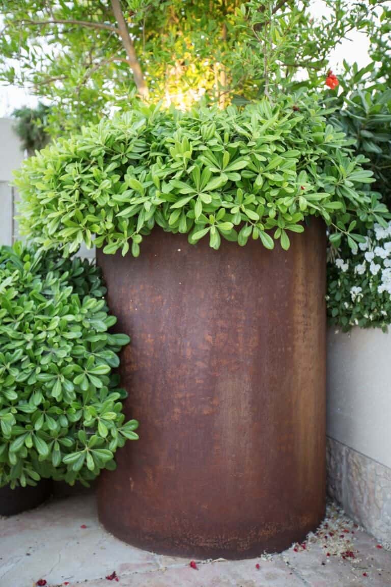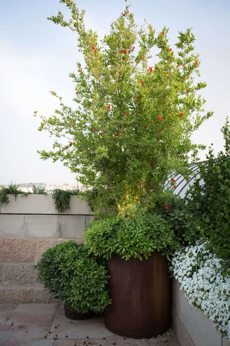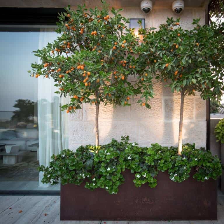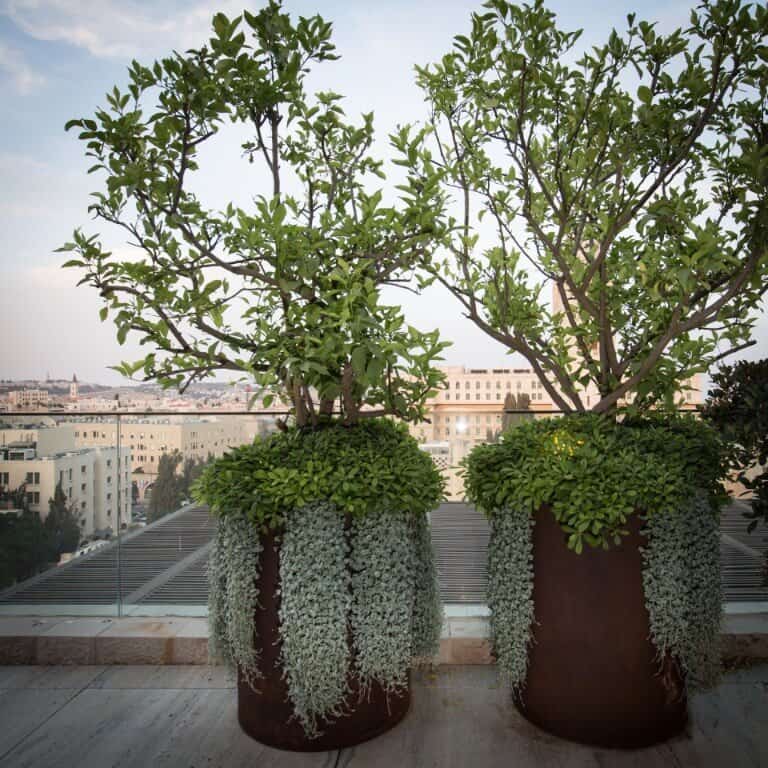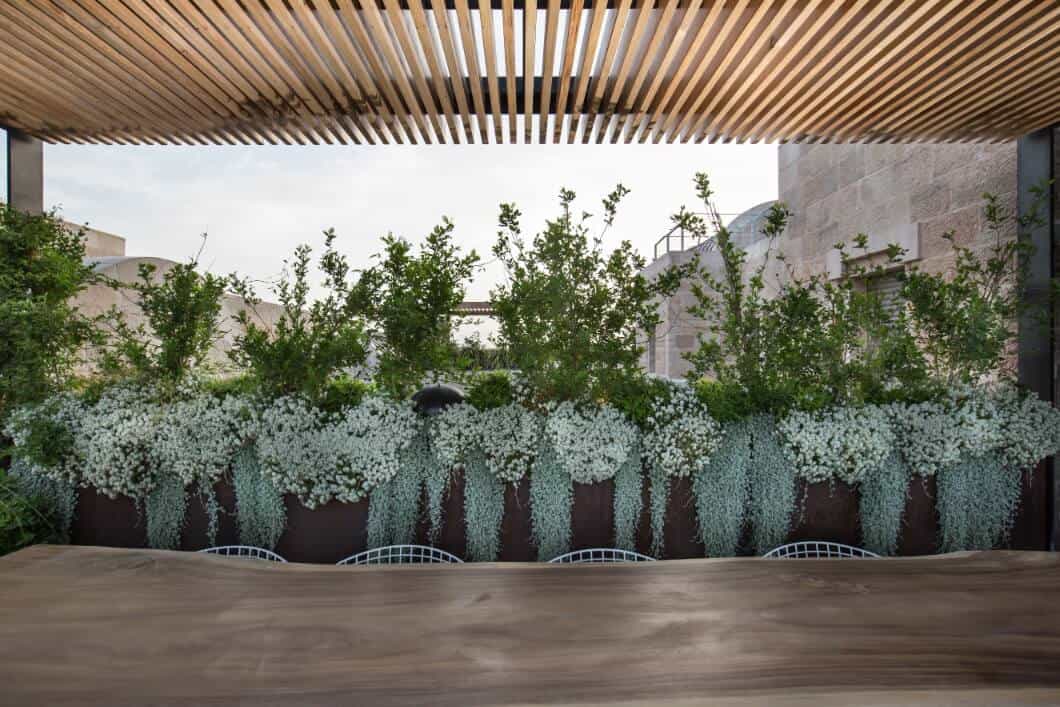 Corten steel planters and pergolas in two penthouses in Jerusalem