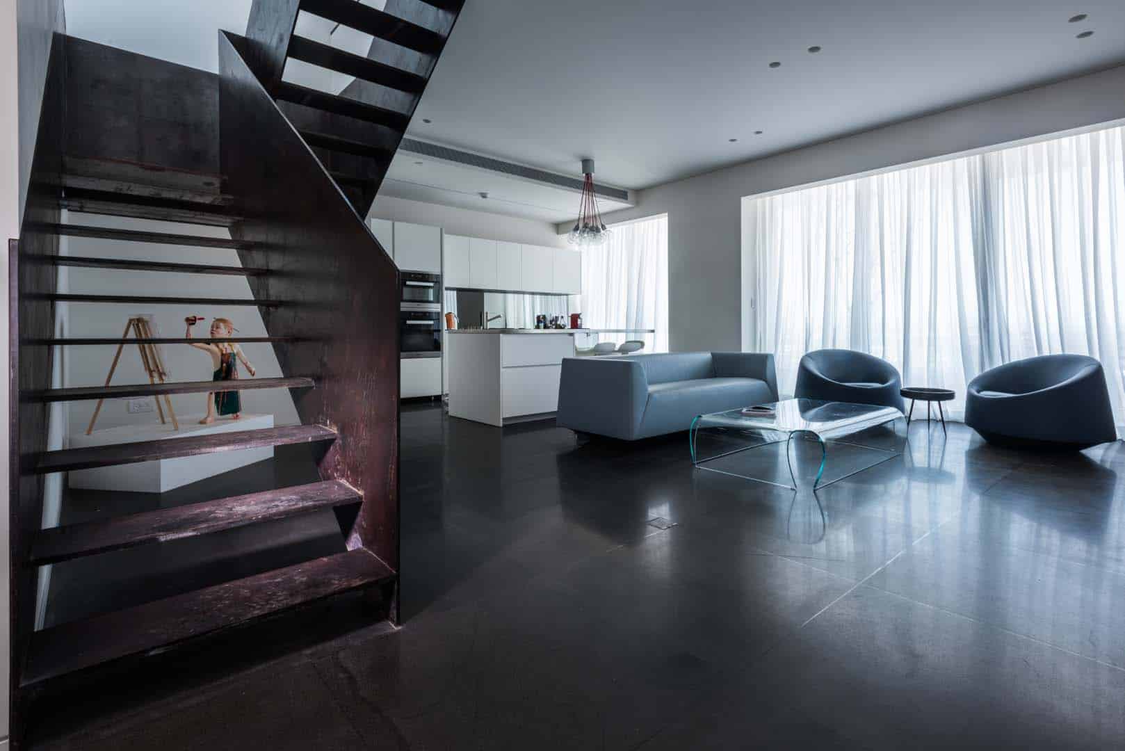 Blackened steel staircase for a private residence in Ramat Hasharon