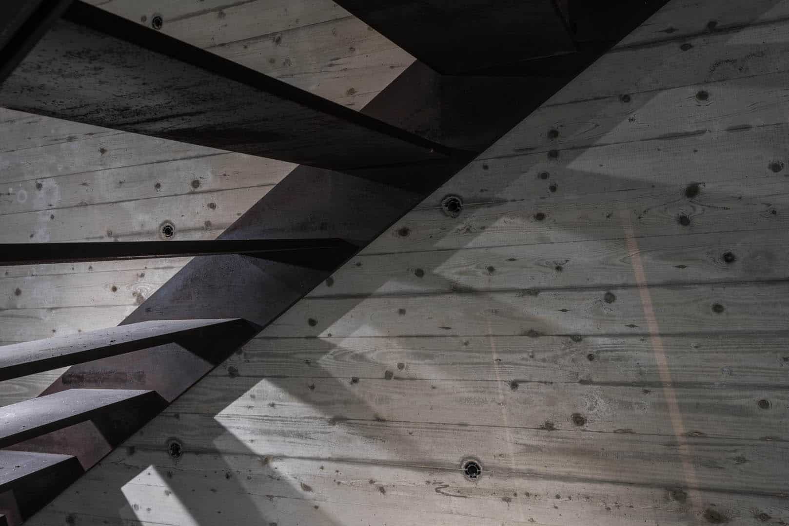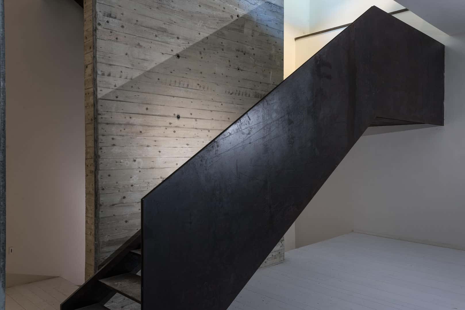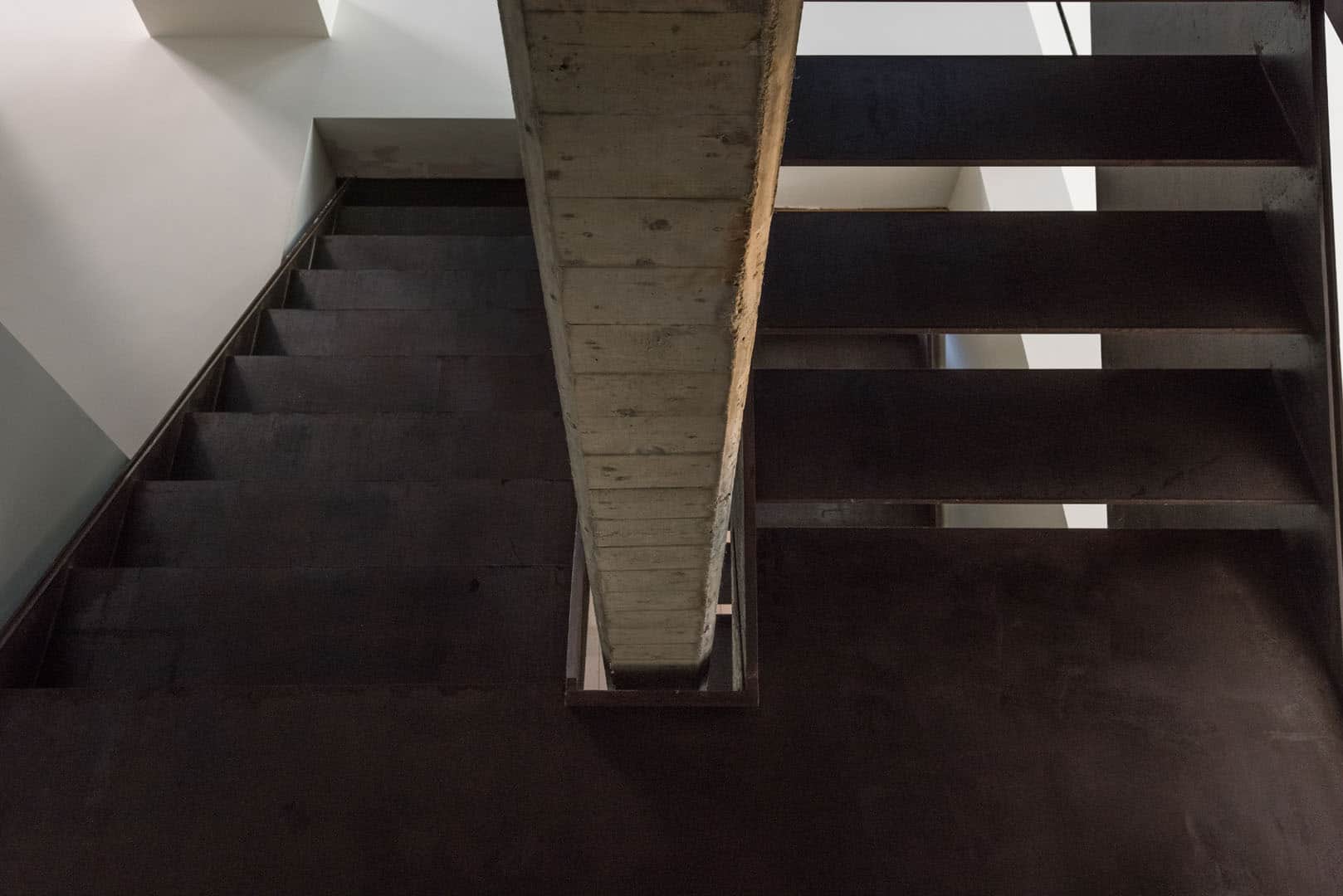 Project in a private house in Ramat-Hasharon, which contained a steel staircase. The goal was to create a massive, rough, rough element that would be around a concrete wall that acompanies the stair shaft. In a house full of natural materials, it was important to create as much texture as possible around the concrete wall, which ran to a height of 4 stories