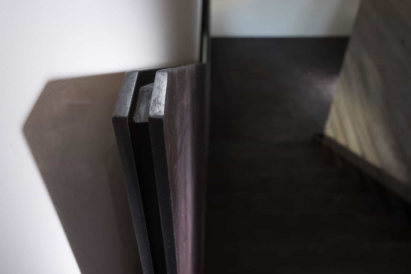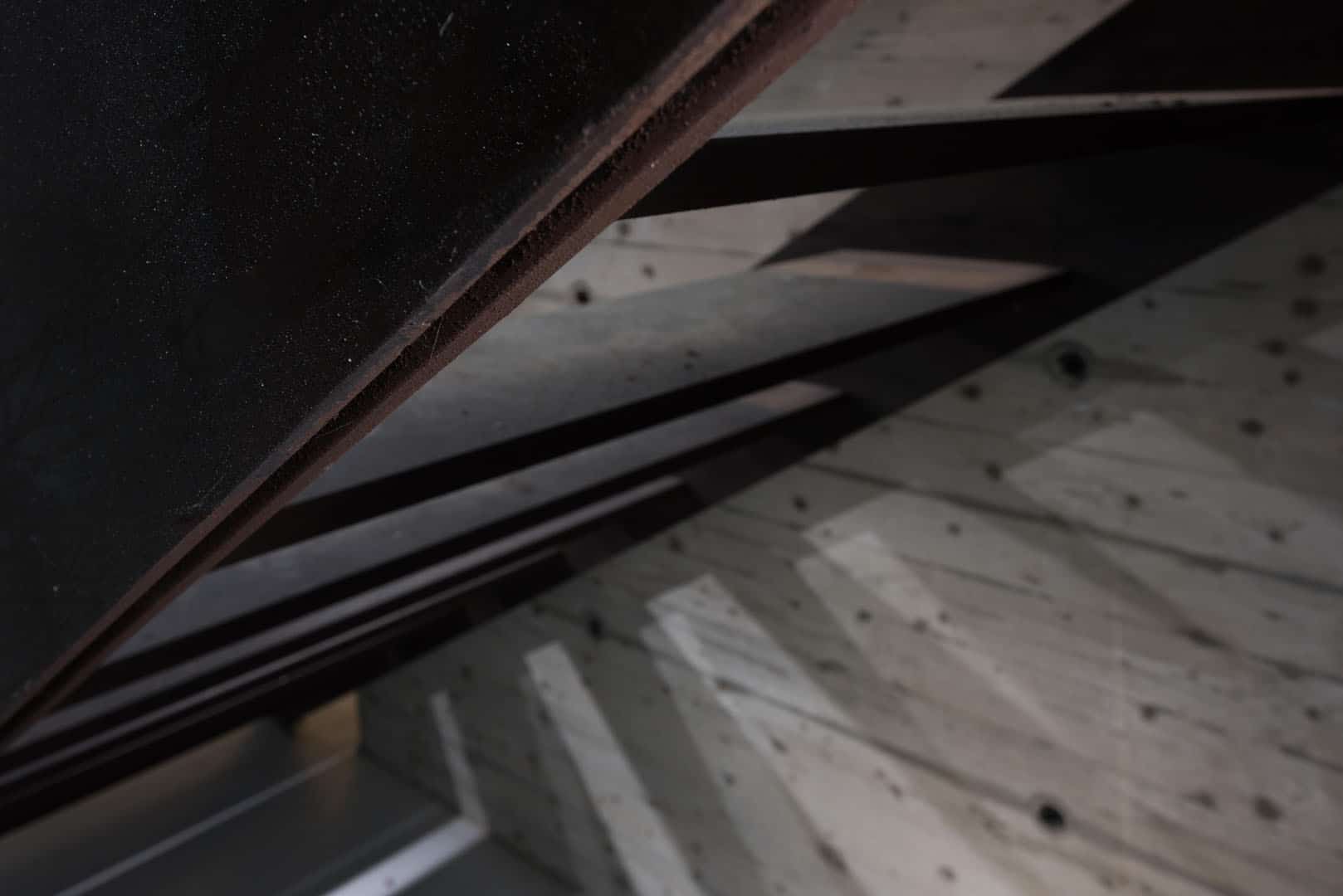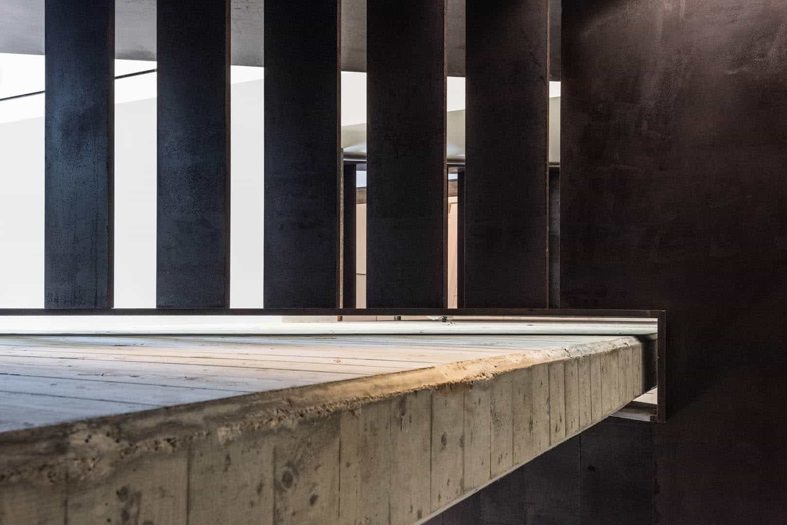Project in a private house in Ramat-Hasharon, which contained a steel staircase. The goal was to create a massive, rough, rough element that would be around a concrete wall that acompanies the stair shaft. In a house full of natural materials, it was important to create as much texture as possible around the concrete wall, which ran to a height of 4 stories